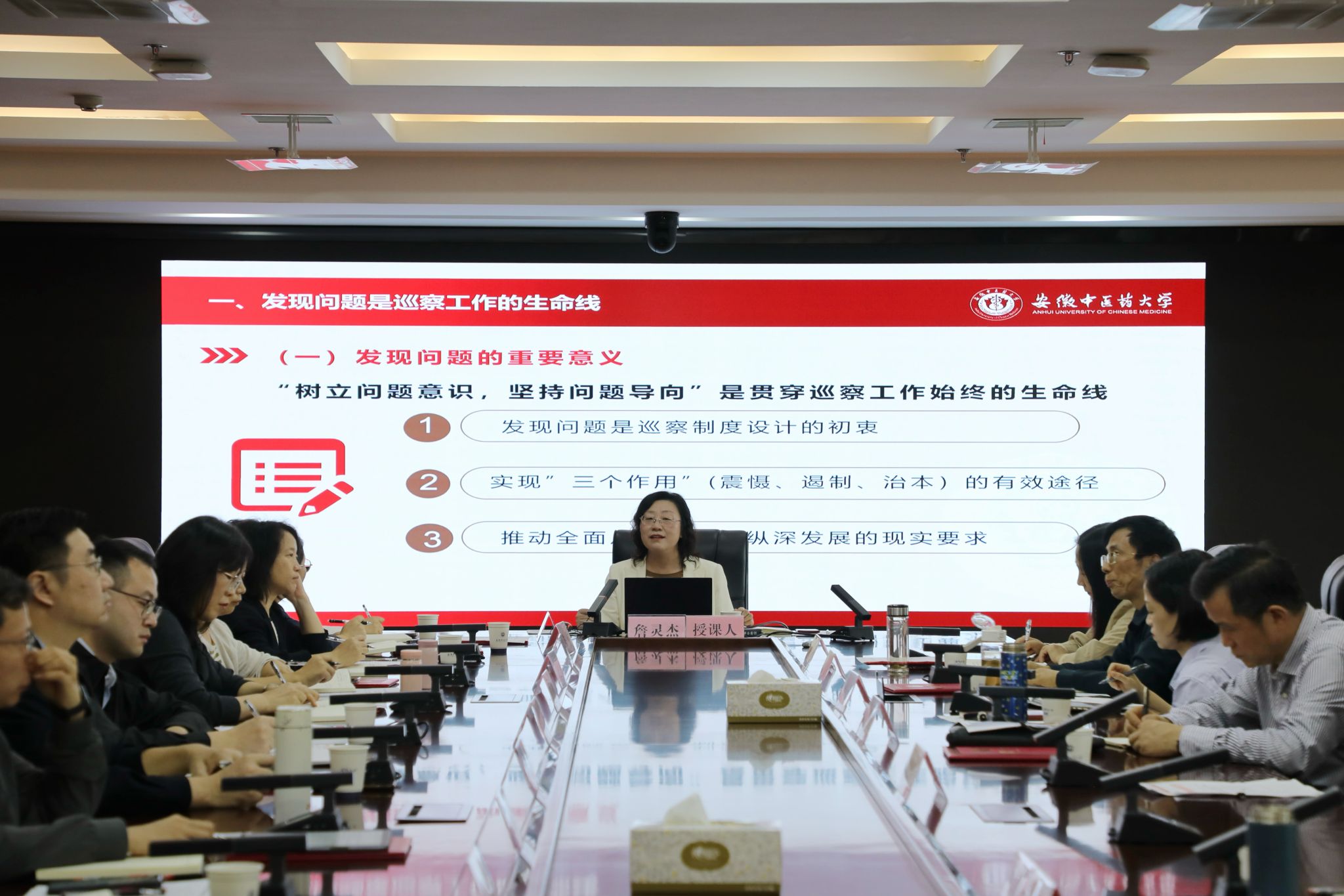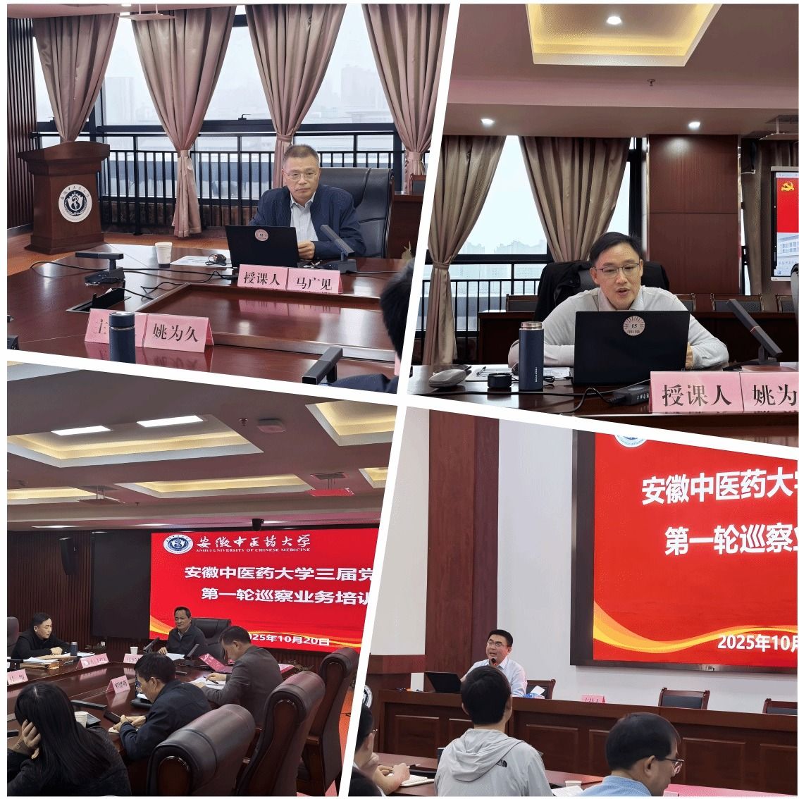 安徽医科大学巡察组常务副组长马军成、安徽师范大学纪委副书记、纪委办主任马广见、校党政办主任苏本江、校巡察办主任姚为久等做专题报告
